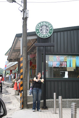 Jiufen is full of old teahouses. What was the first place we saw when the taxi let us off? A Starbucks. (A Starbucks that apparently gets lots of foreign tourists - it's the first Starbucks I ever went to with Jenna where the staff seemed actually impressed with her spoken Chinese - which is pretty good, I'll admit.)